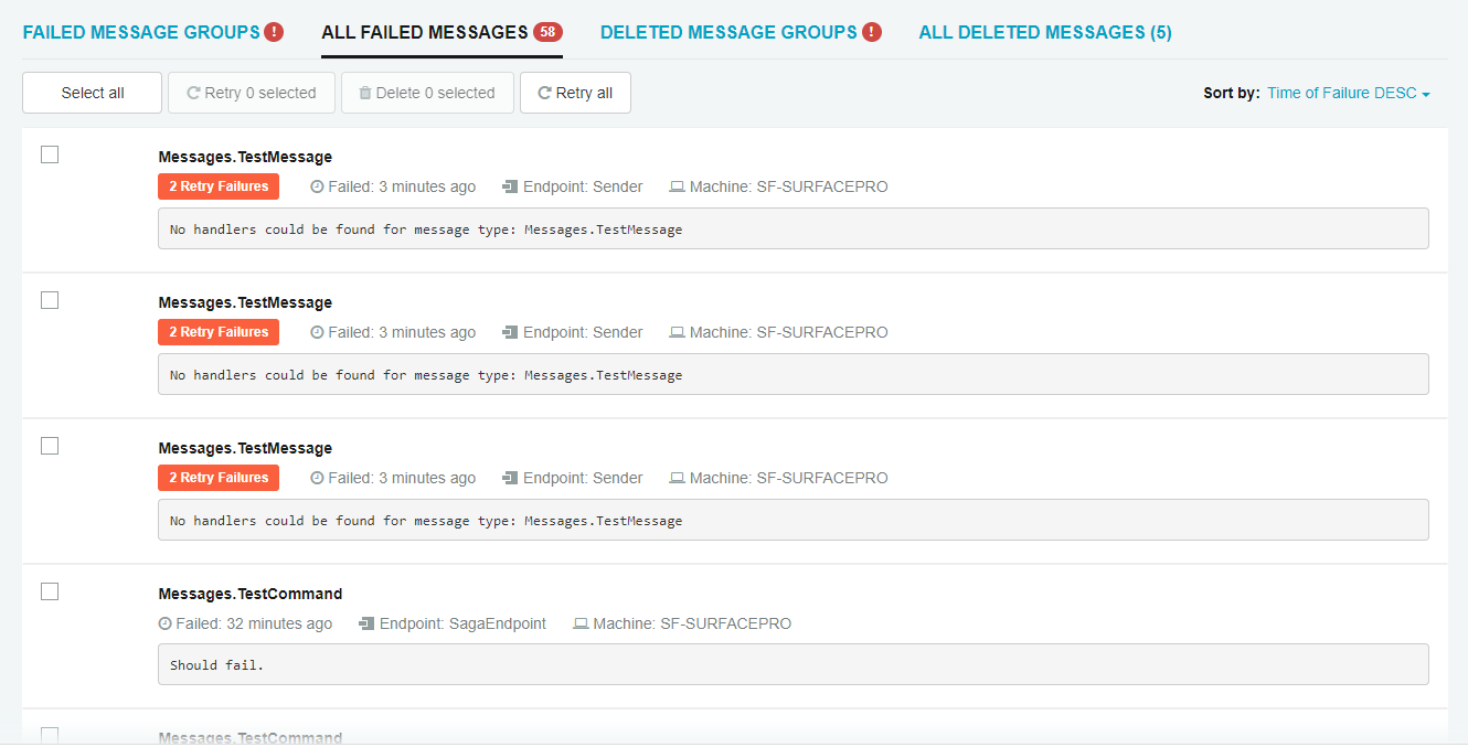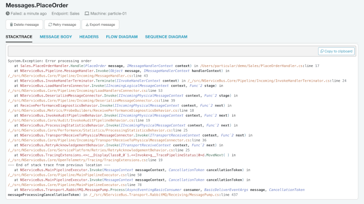 View failed messages with full .NET stacktraces, a comprehensive contextual display of the failure, and the ability to immediately drill down into specific message details and compare them with other messages.